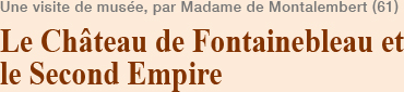 Le Château de Fontainebleau situé à une heure de Paris au sud de la capitale est une des plus grandes résidences royales conservées à ce jour en Europe. Inscrit par l'Unesco au patrimoine mondial de l'Humanité, ce château ambitionne grâce à de nouvelles rénovations d'attirer un public toujours plus nombreux et même de concurrencer Versailles. En effet, Fontainebleau a l'avantage d'avoir été le témoin incontournable d'évènements de l'histoire de France depuis le Moyen-Age jusqu'en 1870, date de la chute de l'Empereur Napoléon III (1808-1873) : rois, reines et empereurs y ont non seulement résidé mais ils y ont laissé leur empreinte.