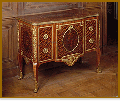 皆さまに是非ともご覧いただきたいのが、素晴らしい造りの小さなテーブル。仕掛けがついていて、とても繊細なマルケトリ装飾が施されたこのテーブル(1760頃)は、王立ゴブラン工房の家具職人J.F. オーベン (1721-1763)による逸品です。ボードを動かせば傾斜を調整できる書見台にもなりますし、秘密の引き出しもあります。なんとエレガントで、精巧な造りでしょう!また、このサロンには著名なイギリス人画家レイノルズ(1723−1791)が描いた、英国貴族ロバート・ヘンリーの肖像画(1780頃)もありますのでお見逃しなく。フランスでレイノルズの作品を所蔵する美術館はあまりございませんので、一見の価値ありといえましょう。 |