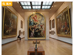 ▲17世紀から18世紀のフランスとフランドル絵画の展示室。正面はルーベンス(Peter Paul Rubens)の《イエスの怒りの世界から身を守る聖ドミニクと聖フランソワ》。 |