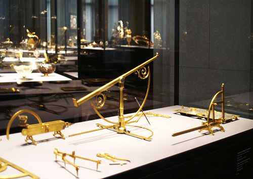 2013年に11年ぶりに再オープンしたウィーン美術収集室(Kunstkammer Wien)は、黄金の塩入れ《サリエラ》などが有名な美術装飾品や彫刻のコレクションで、美術史美術館の特徴を示すコレクションのひとつです。黄金の装飾が施されたクリスタルの水差しや、貝やダチョウの卵などに繊細な金の装飾を施したもの、いまでいうアイデアグッズ的な思わず微笑んでしまうようなものなど、とてもユニークな展示になっています。その中でも特に機能的で繊細な当時の科学計器の展示の美しさは必見です。
